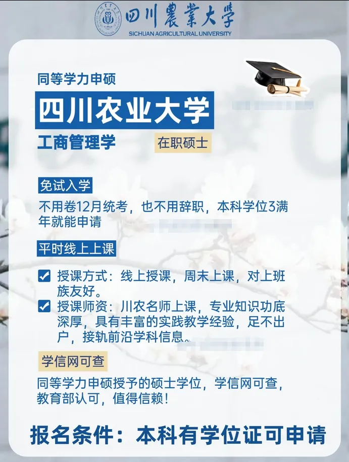 #四川农业大学同等学力申硕 #川农工商管理申硕 #在职硕士 #免联考MBA #在职学历提升 #打工人读研 #四川在职硕士 #管理学硕士 #不卷统考读研 #川农申硕#川师#四川师范大学#川师大#川农#四川农业大学#川农大#中南财经政法大学#中南财大#三峡大学#湖北大学#湖南中医药大学#湖南中医大#同硕#同等学历申硕#同等学历升硕#在职研究生#单证研究生#硕士研究生#研究生#免试入学#在职读研##在职硕士#医学研究生
