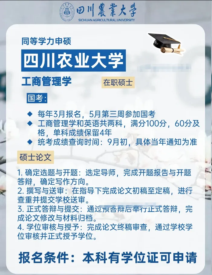 今天直接给大家上硬货✅ 四川农业大学工商管理同等学力申硕,免联考、低门槛、高性价比,专为在职党量身定制,不耽误工作也能轻松解锁硕士学位,职场逆袭就靠它!