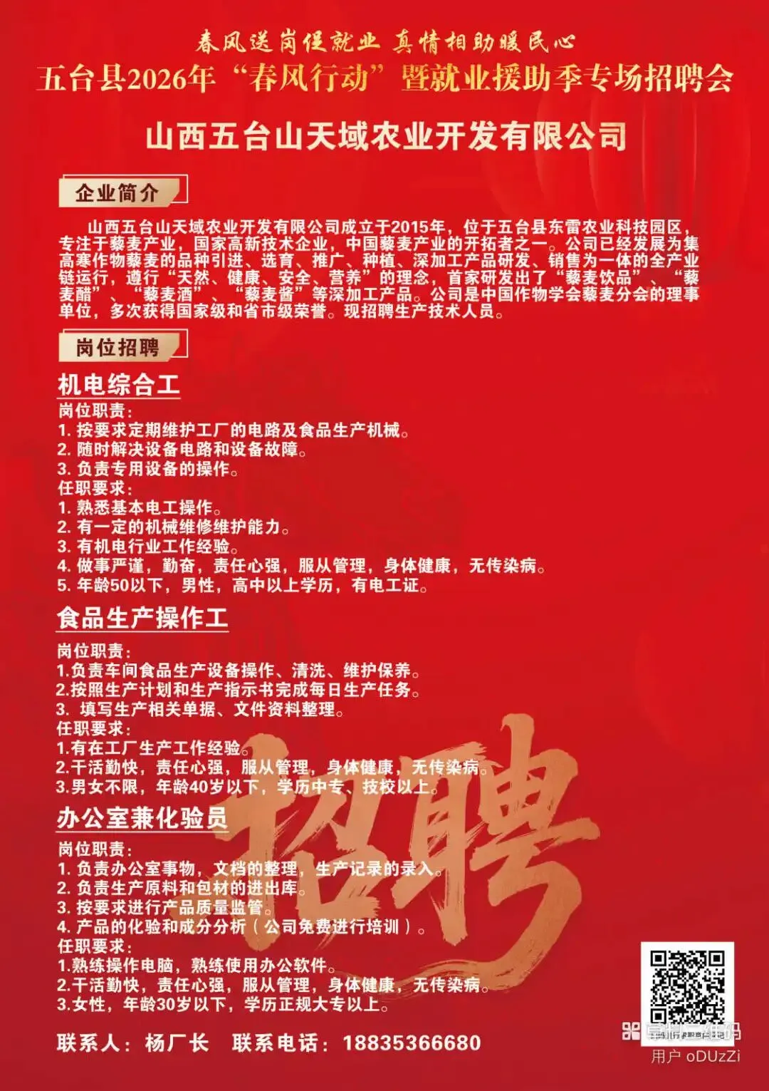 >山西五台山天域农业开发有限公司招聘工作人员公告