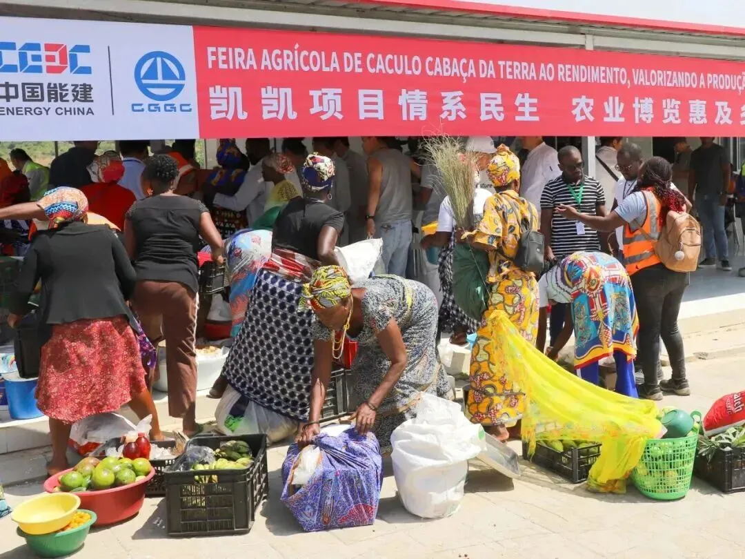 安哥拉当地时间2026年3月6日上午,一场主题为“凯凯项目情系民生 农业博览惠及乡邻”的中安友谊“农业博览会”在位于宽扎河畔的中国能建葛洲坝集团安哥拉凯凯水电站项目部4号营地服务区盛大开幕。这场在“一带一路”上举办的“农业博览会”,被当地村民亲切地称为“幸福的赶集日”。当天一大早,村民们就乘坐项目部安排的大巴车陆续来到“农业博览会”现场,手脚麻利、十分勤快地在摊位上摆放各类特色蔬菜水果。随着前往“农业博览会”的人员越来越多,现场也逐渐变得异常热闹繁忙。安哥拉凯凯水电站项目部经理陈永刚一到现场,就看上了一个大菠萝,毫不犹豫地买了下来,带回去和同事们分享。“我们的农产品不仅香甜可口,而且价格也很优惠。”一位当地村民自豪地说。笔者在现场看到,有的村民因为自己带来的产品十分畅销,在动感的音乐声中高兴地跳起了舞蹈,将整个活动推向了高潮。不仅是凯凯水电站项目部的员工,这场精彩绝伦的“农业博览会”还吸引了业主、监理和大批分包商的人员。从早晨开始,来来往往的人一波又一波,络绎不绝、比肩接踵。当地村民也源源不断往现场运输农产品,保证货物供应及时。更值得一提的是,活动还吸引了不少当地时尚青年前来打卡。他们虽然没有摆摊设点,但是当看到安哥拉的农产品如此受中国人欢迎,内心油然生出一股对CGGC的感激之情和敬佩之感。他们特别选择在有CGGC标识的横幅和大牌子前主动和中国朋友合影留念。据介绍,此次“农业博览会”将持续两天,从3月6日上午开始,至3月7日下午结束。“今后我们将定期举办农产品促销活动,每周一次,每次举办2天。同时,我们还将通过项目集中采购的方式,加大当地农产品促销力度,实现项目员工和当地村民双赢。”负责组织此次“农业博览会”的项目部员工孙小辉表示。“CGGC在推动项目建设的同时,始终积极履行社会责任。凯凯水电站项目的顺利推进,离不开周边社区和每一位村民的支持。安哥拉土地肥沃,当地村民用勤劳培育出绿色无污染的农副产品。本次展销活动正是我们搭建的增收桥梁,助力广大村民拓宽销路、增加收入,推动周边乡村经济发展。”安哥拉凯凯水电站总经理助理张林锋在“农业博览会”开幕式上动情地说。据了解,安哥拉凯凯水电站项目自开工建设以来,始终与村民同心同行,免费提供医疗服务、开展扫盲教育、送水上门,切实解决村民的生活难题;创造就业岗位,以“师带徒”模式培育本地技能人才,实现“授人以渔”,充分体现了CGGC的责任担当,也体现了中安两国人民的深厚友谊。下一步,CGGC将继续深耕安哥拉,持续开展惠民举措,助力乡村振兴,帮助村民走向致富,真正造福中安两国人民,不断续写中安合作佳话。