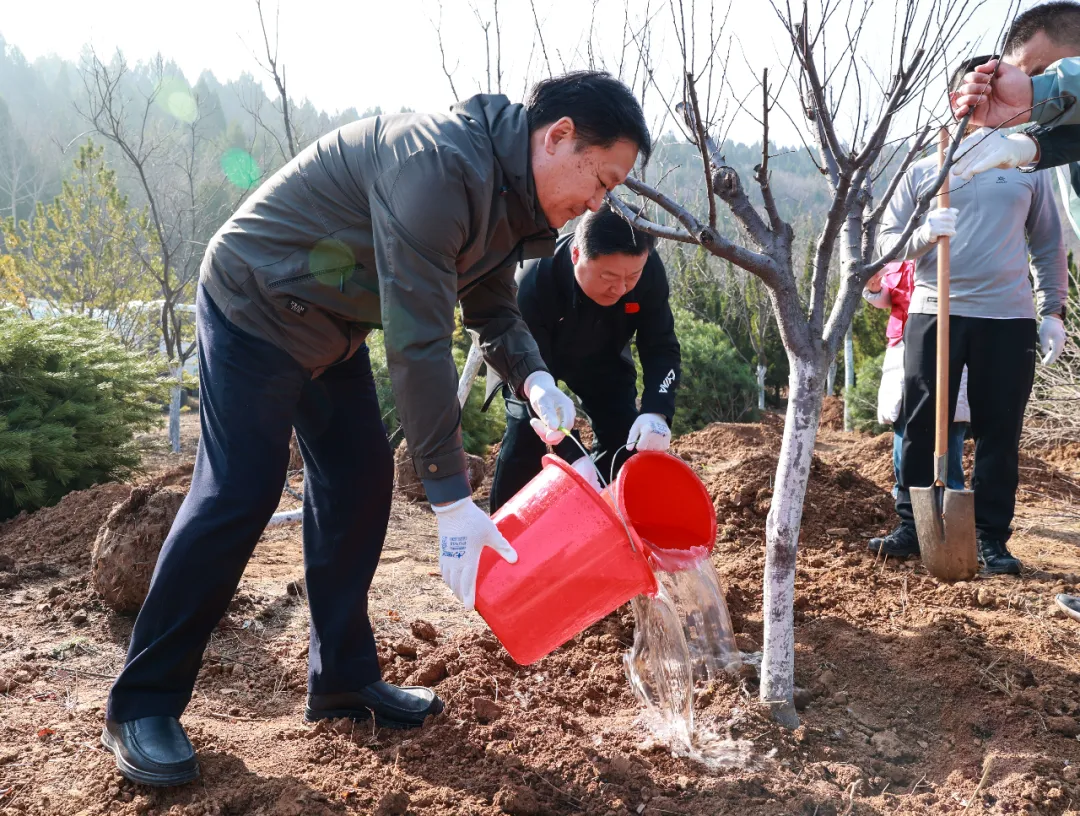 在老君崖景观林植树现场,大家热情高涨、分工协作,挥锹挖坑、扶苗培土、踩实浇水,每一个环节都一丝不苟、配合默契。经过近两个小时的忙碌,100余株新苗迎风挺立,为景观林增添了一抹盎然春意,勾勒出一幅政企同心、共筑绿色家园的美好画卷。