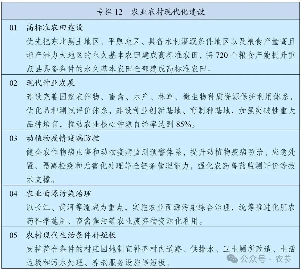 统筹发展科技农业、绿色农业、质量农业、品牌农业,把农业建成现代化大产业。深入实施种业振兴行动,加强种质资源保护利用,健全商业化育种体系,强化育种联合攻关,培育高产优质、抗逆广适新品种,提升种源安全保障水平。实施农机装备高质量发展行动,促进良田良种良机良法集成增效,农作物耕种收综合机械化率提高到80%以上。围绕核心种源、农机装备、农业节水等加强关键核心技术攻关,构建梯次分明、分工协作、适度竞争的农业科技创新体系,培育农业科技领军企业。健全公益性和经营性相结合的农业科技推广体系。积极推广地理标志产品和品牌。