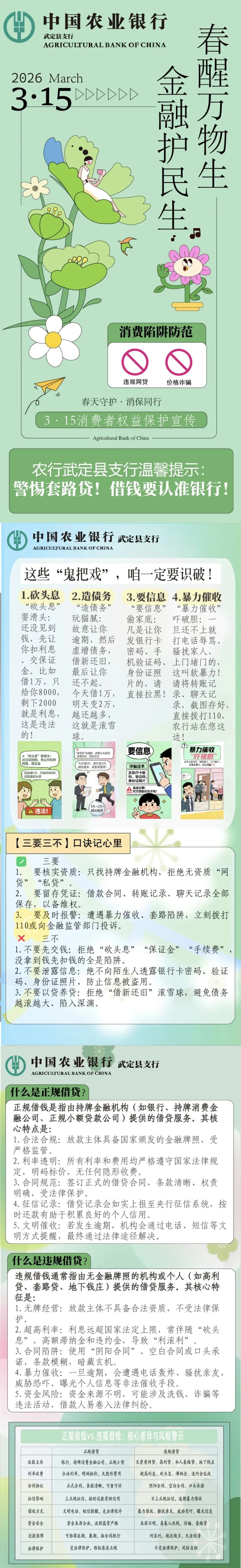 【防电信诈骗】农行武定县支行温馨提示: 警惕套路贷!借钱要认准银行!