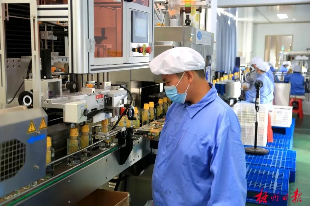 广西梧州甜蜜家蜂业有限公司员工在生产线上工作。黎杰源 摄(资料图)