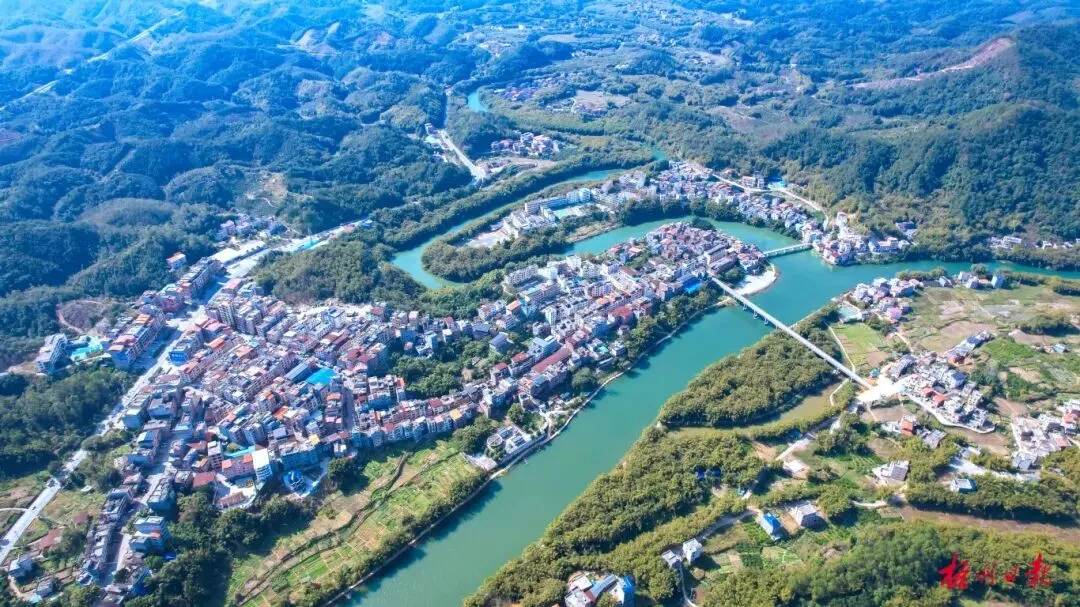 近日,在苍梧县梨埠镇,一弯碧水穿村过,与青山、村庄房屋共同汇聚成一幅和美乡村新画卷(无人机拍摄)。 周火文 吴玲 摄