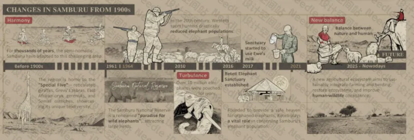 桑布鲁人需要在生态承载范围内管理其牲畜数量,并对水井资源进行可持续利用。合理的放牧方式不仅可以为大象孤儿院提供牛奶,还能为桑布鲁社区创造收入来源。