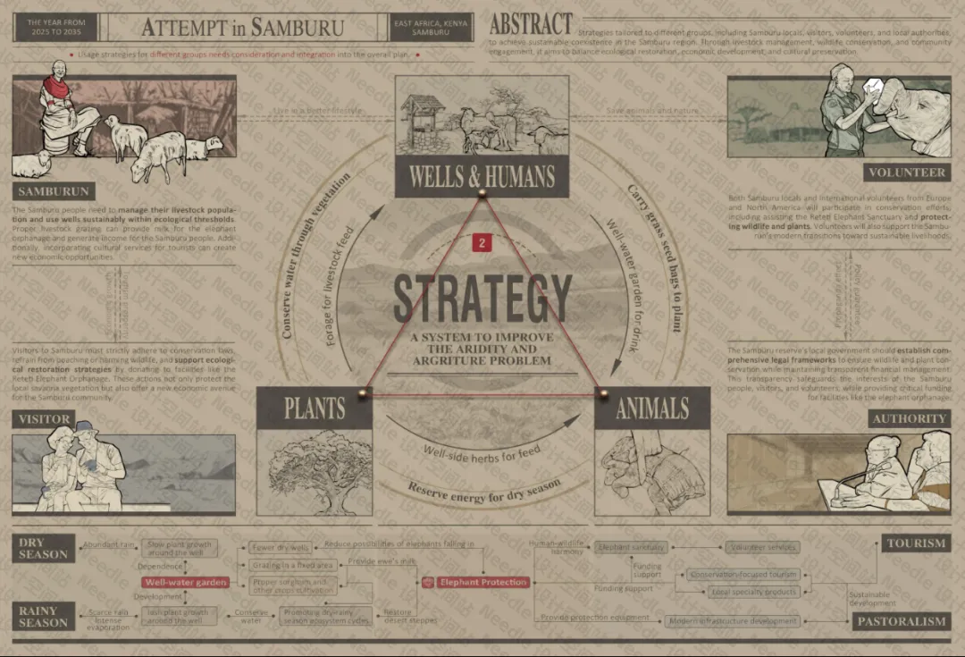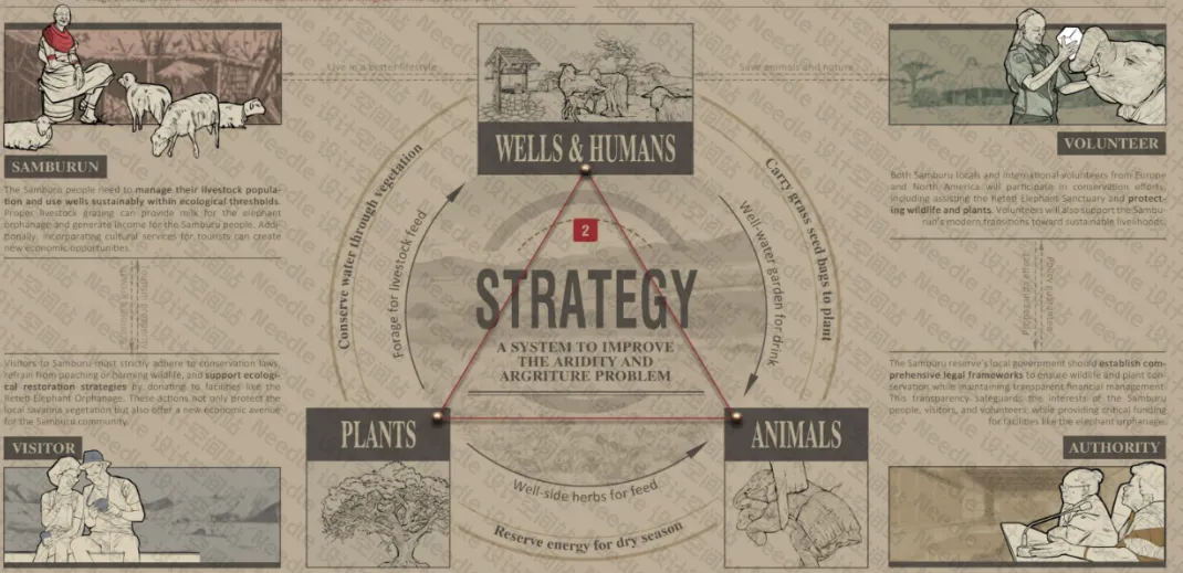 本研究针对桑布鲁当地居民、游客、志愿者以及地方政府等不同群体提出相应策略,以实现桑布鲁地区的可持续共存。通过牲畜管理、野生动物保护以及社区参与等方式,项目旨在在生态修复、经济发展与文化保护之间取得平衡。