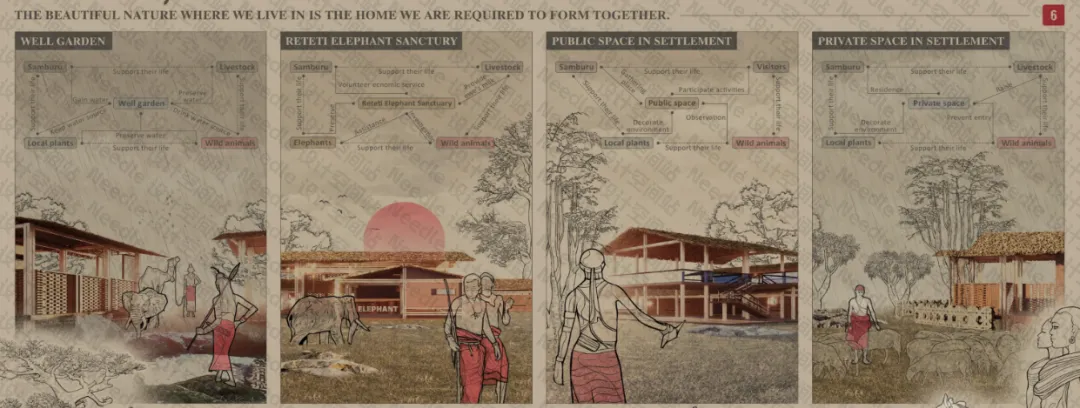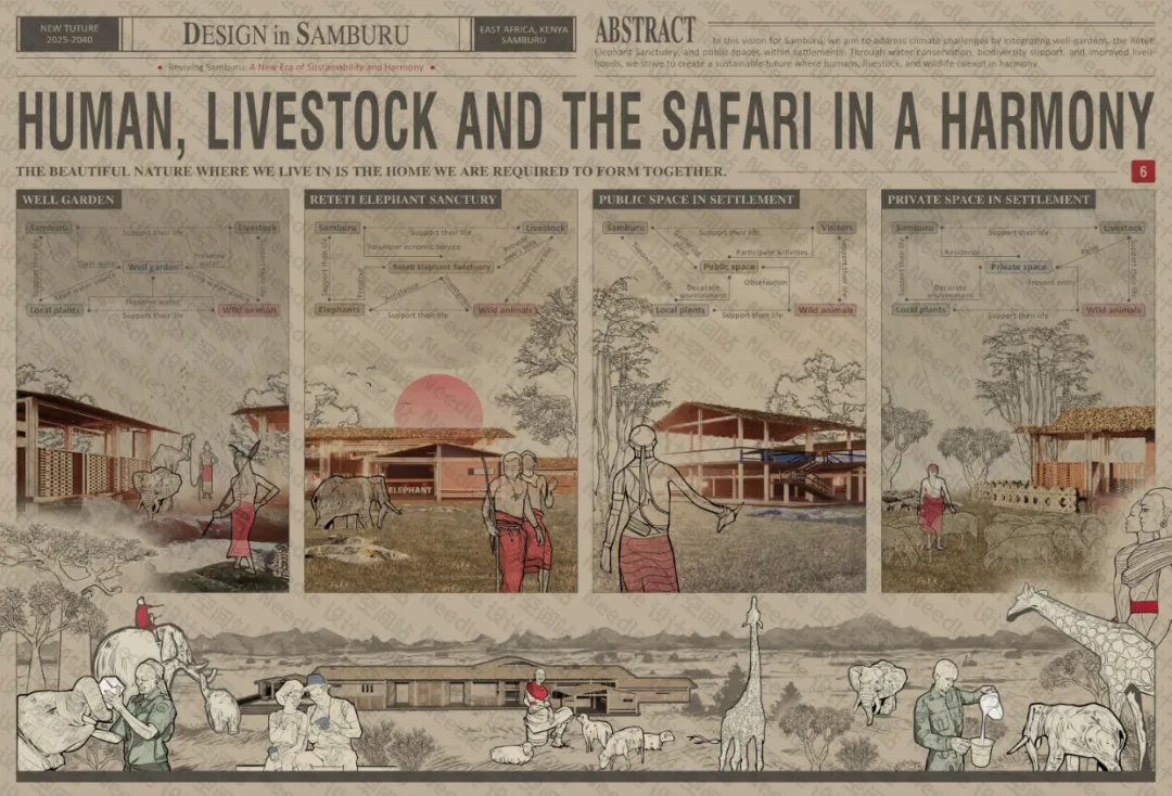 在桑布鲁的发展愿景中,我们旨在通过整合井—花园系统、Reteti 大象保护中心以及居民公共空间来应对气候挑战。通过节约用水、支持生物多样性以及改善社区生计,努力构建一个人类、牲畜与野生动物和谐共存的可持续未来。