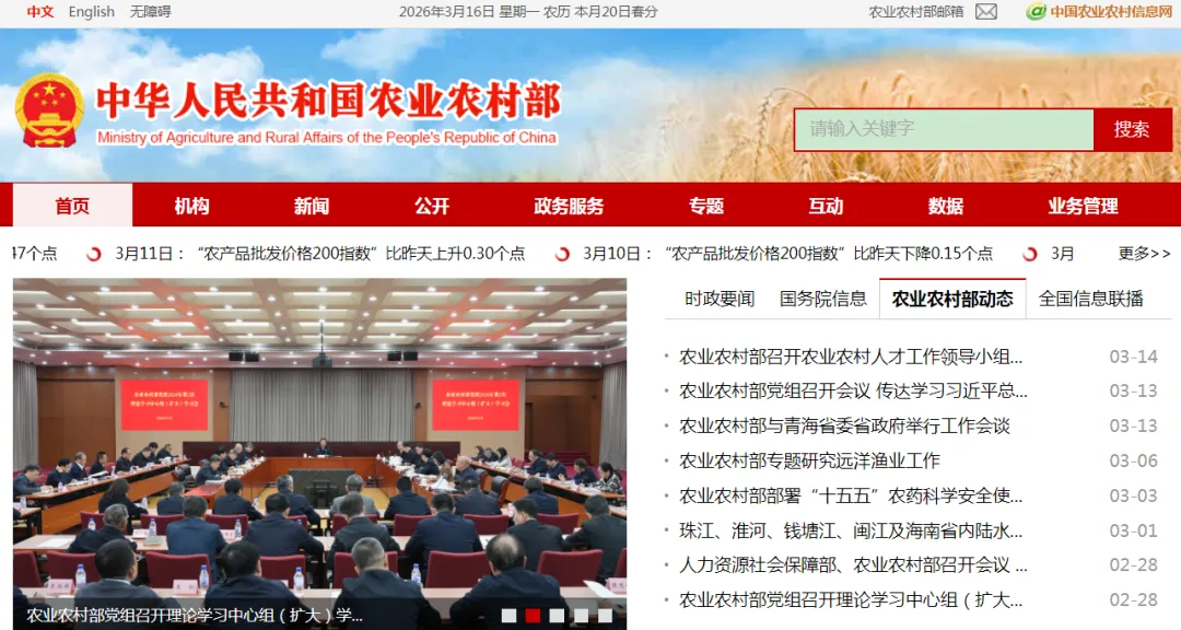 ✨ 核心用途:农业领域的“官方风向标”!查最新农业政策、各类补贴细则(比如耕地地力保护补贴、农机购置补贴)、项目申报入口、农业国家标准、行业数据,还有2026年中央一号文件解读、农产品供需形势分析等核心信息,所有和农业相关的官方通知,这里都能找到源头。