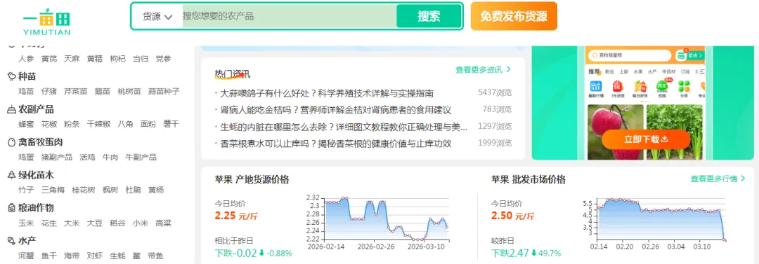 ✨ 核心用途:农产品B2B批发首选!不管是果蔬、粮油,还是畜禽产品,都能在这里发布供应信息、对接批发商、采购商,支持产地直供、预售、直播带货,交易保障完善,适合中小种植户、代办找销路。