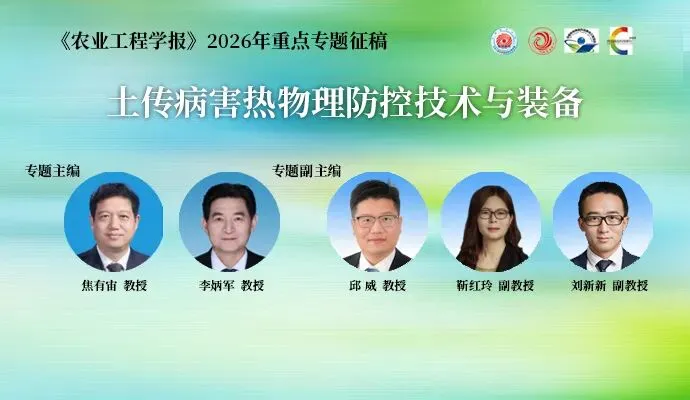 注册-在线投稿-上传稿件-选择“土传病害热物理防控技术与装备术”专题投稿。英文稿可推荐至《International Journal of Agricultural and Biological Engineering, IJABE》(SCI)(http://www.ijabe.org)审核通过后发表。