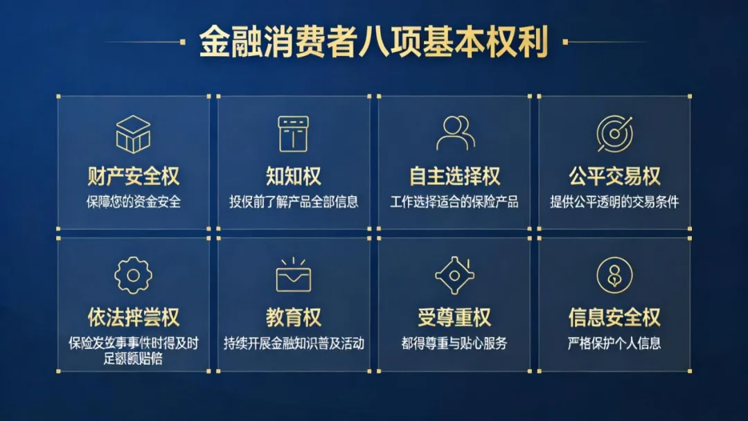 作为金融消费者,您享有八项基本权利,我们有责任确保您清楚了解并能依法维护: