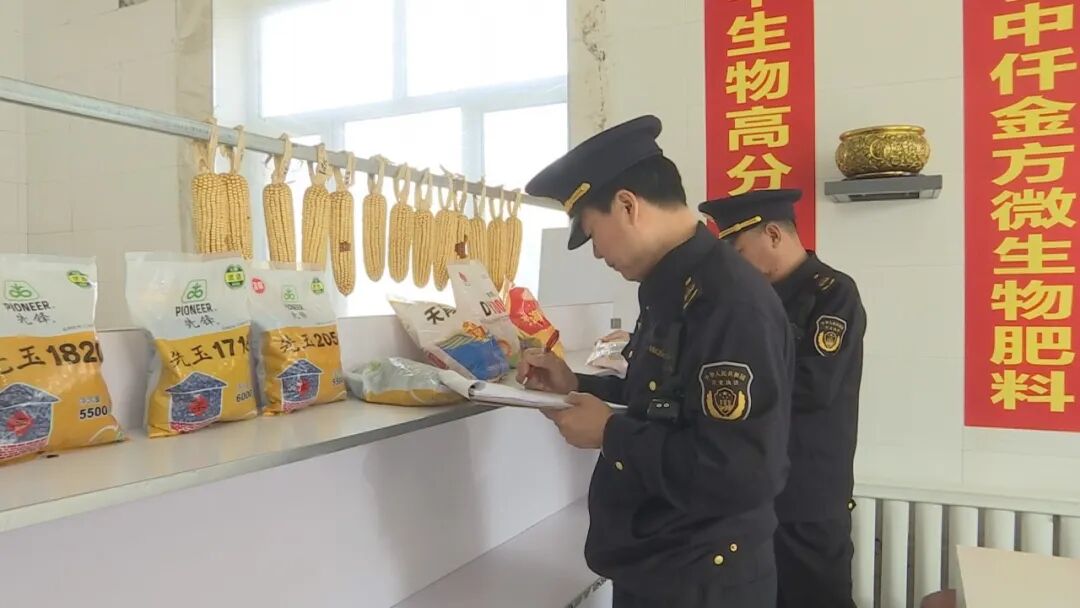 农资经营商户店长 刘春杰:执法部门上门检查,既是监督也是指导,帮我们规范了经营流程。我们一定严格遵守规定,严把进货质量关,建好进销台账,不卖假冒伪劣产品,明码标价,诚信经营,为乡亲们提供合格靠谱的农资产品,全力支持春耕生产。