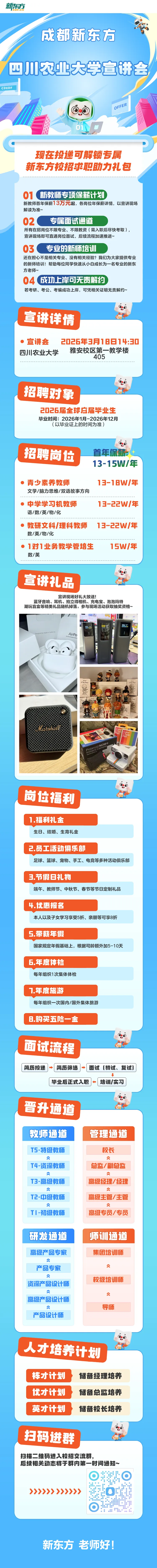 3月18日14:30丨新东方x四川农业大学26届春招宣讲会-年保薪13W起,教师岗等你来投!