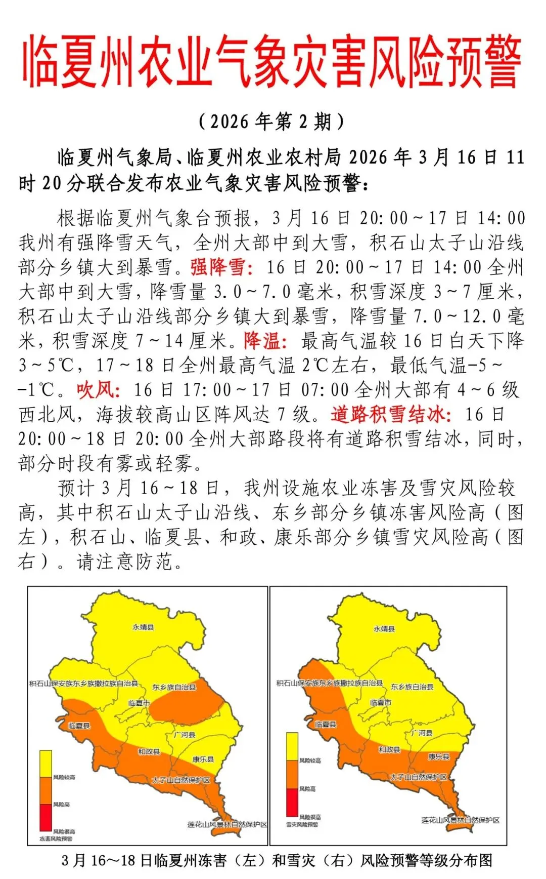 >临夏州农业气象灾害风险预警