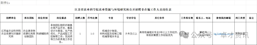 (六)具备报考岗位要求的资格条件(详见附件1:江苏省农业科学院农业资源与环境研究所公开招聘非在编工作人员岗位表);