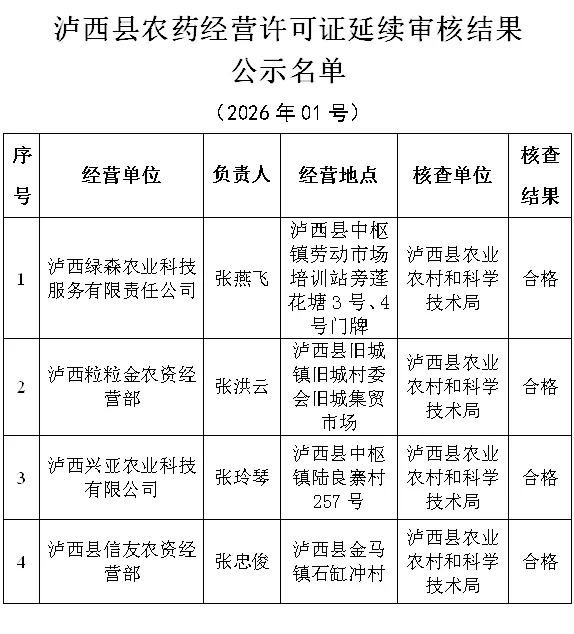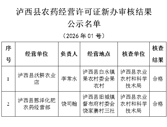 公示期7个工作日,时间:2026年1月6日至2026年1月14日。公示期间如有异议,请向泸西县农业农村和科学技术局办公室反映。