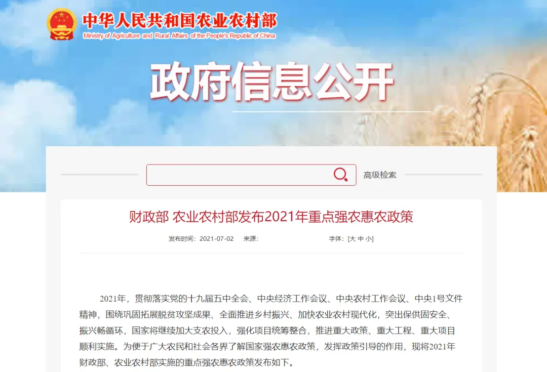 请收藏!财政部 农业农村部发布2021年重点强农惠农政策