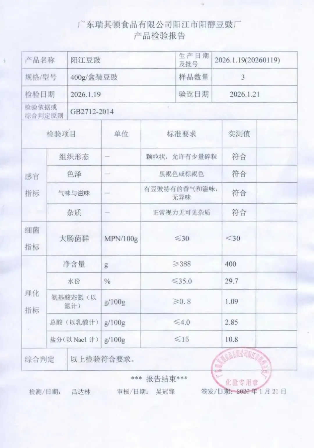 调味品(海天、酱料、杂货、酒类、雀巢奶粉)检测报告