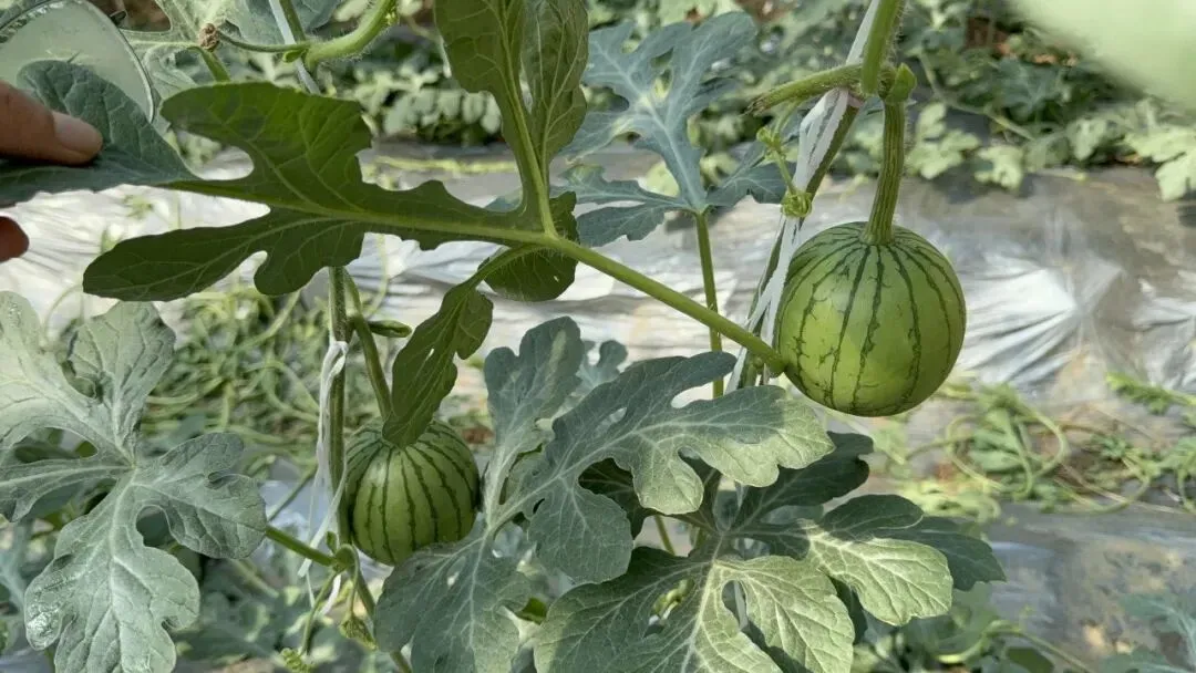 走进东埠郭园区的温室大棚,一眼便能看到不同生长期的西瓜、甜瓜整齐排列,长势喜人: