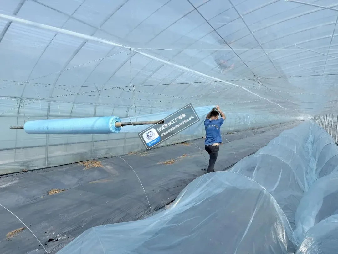 为了给瓜苗创造更稳定的生长环境,工人们认真插弓子、覆二膜。双层膜保温、保墒、防风、防冻,让幼苗在早春也能安稳生长,为后期高产高质打下坚实基础。