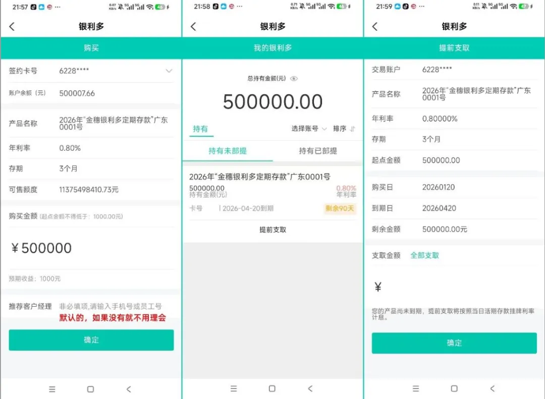 微信扫码—跳转登录农行广东分行微银行—买入银利多(选哪支都行,均可提前支取)