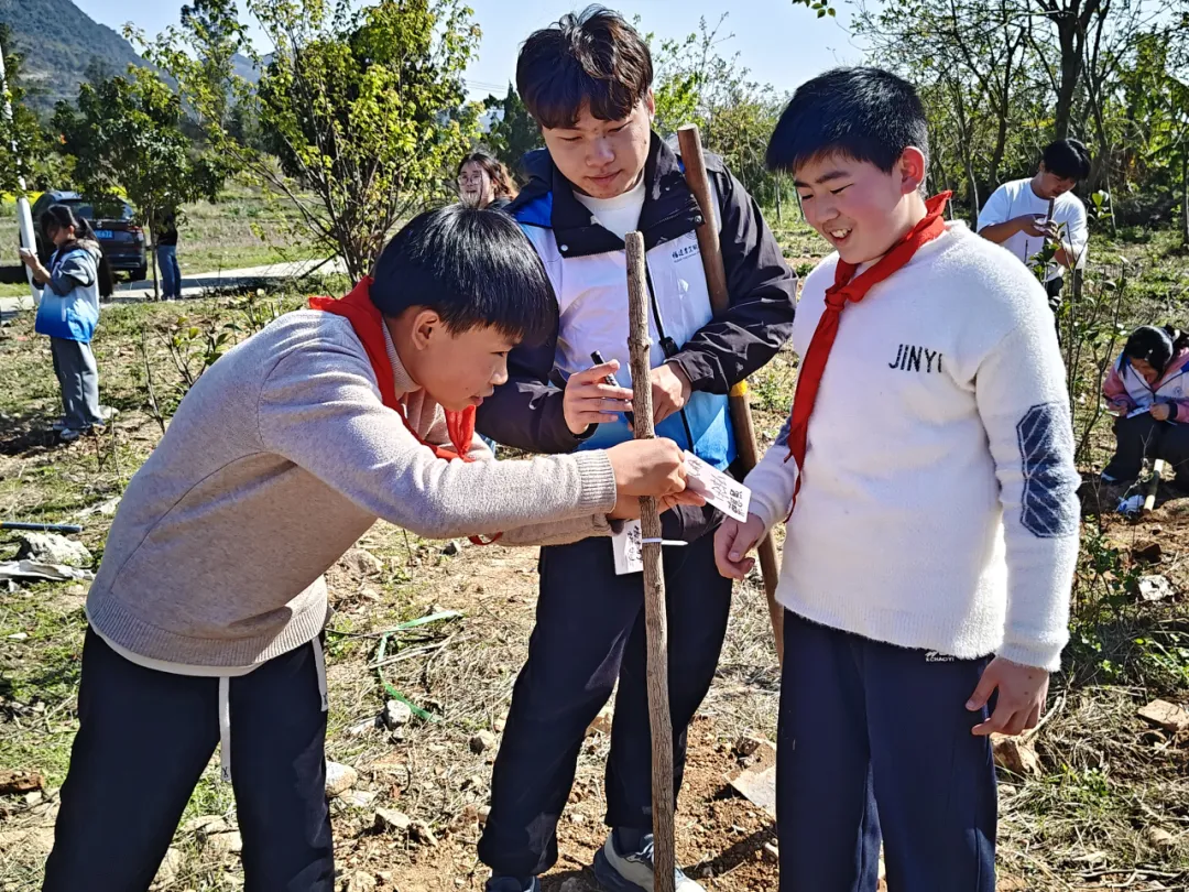 劳动中有指导:辅导员现场讲述校友扎根基层、服务“三农”的奋斗故事,将植树点转化为“沉浸式思政课堂”。
