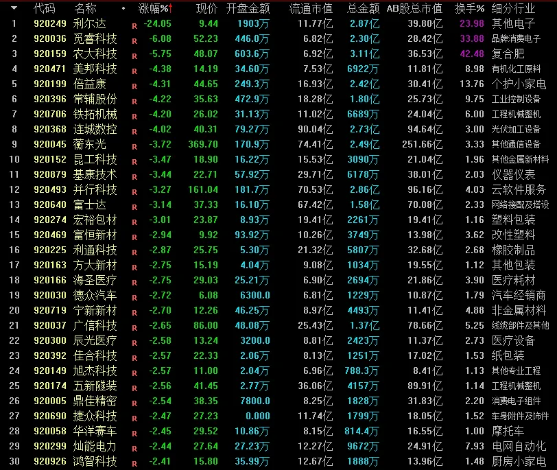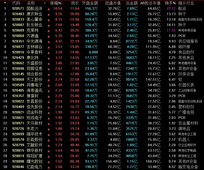 北交所内部轮动:航运与农业领涨,科技与电子领跌