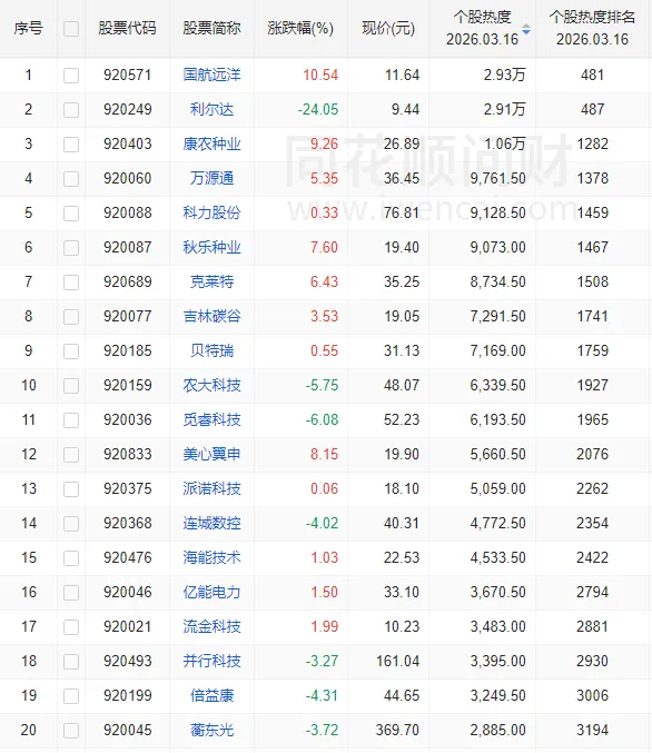总结:2026年3月16日,在主板市场“科技领涨、周期调整”的背景下,北证50指数缩量下跌0.35%。国航远洋受航运板块带动大涨,康农种业受益于农业政策走强;而利尔达因立案调查暴跌,觅睿科技、农大科技则因获利了结及板块拖累而调整。市场主线清晰(航运、农业),但个股风险(立案调查)与机会(事件驱动)并存。策略上,应紧跟有明确催化的产业主线(航运),利用北交所的高弹性特征挖掘映射机会,同时坚决规避有重大基本面风险的个股,并密切关注市场量能变化。