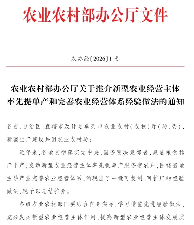 点击链接查看原文:《农业农村部办公厅关于推介新型农业经营主体率先提单产和完善农业经营体系经验做法的通知》