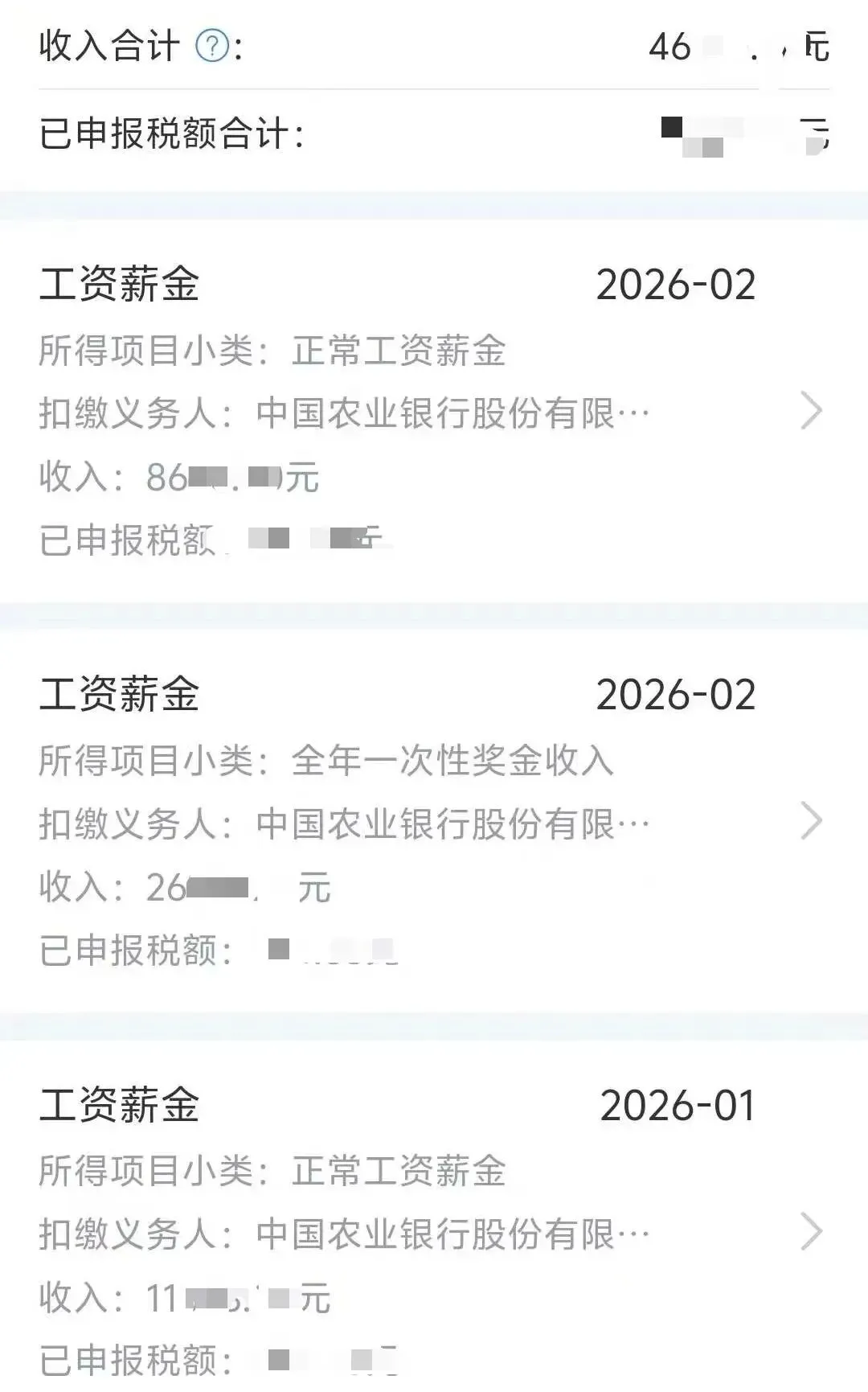 一名中国农业银行柜员分享,二本师范生,年终奖2.6万元,2月工资8600+,1月工资11000+。