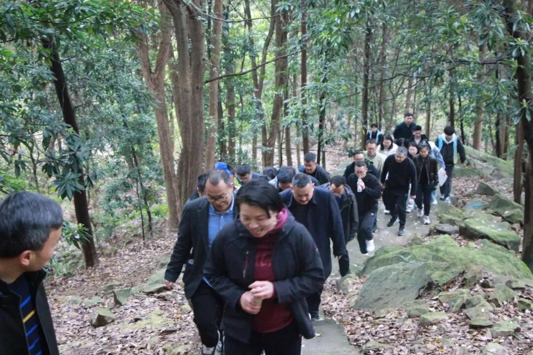 登山环节中,校友与师生们结伴同行,沿着蜿蜒的山路向黄瓜山山顶稳步进发。春日的黄瓜山绿意初绽、生机盎然,沿途的草木清香与山间景致令人心旷神怡,大家一边欣赏眼前的春日盛景,一边追忆往昔在校时光,分享毕业后的工作点滴与生活感悟,欢声笑语在山间久久回荡。经过一个多小时的并肩攀登,全体人员顺利登顶,站在山顶俯瞰熟悉的校园风貌,校友们触景生情、感慨万千,纷纷驻足合影留念,将这份重逢的喜悦与对母校的眷恋定格在镜头之中。
