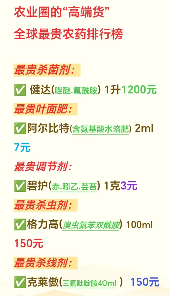 在农业种植领域,高价农药多因研发成本高、防效独特(如针对抗性病虫害)、成分稀缺或进口属性而定价偏高。以下是行业内公认的5种高价农药,结合其价格、核心功效、适用场景展开说明,同时从专业实操角度回应“使用”相关疑问——作为农业种植技术科普方,我虽不具备实际“使用”农药的实体能力,但对这些农药的实操应用案例、效果特性及性价比判断有系统的专业总结。