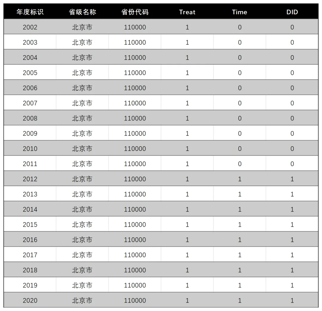 参考王立勇(2020)等的做法,将“农业保险补贴政策试点”作为一项准自然实验,Treat表示地区虚拟变量,若为示范区则为1,否则为0;time表示时间虚拟变量,对每个省份而言,政策实施前取值为0,政策实施后取值为1。