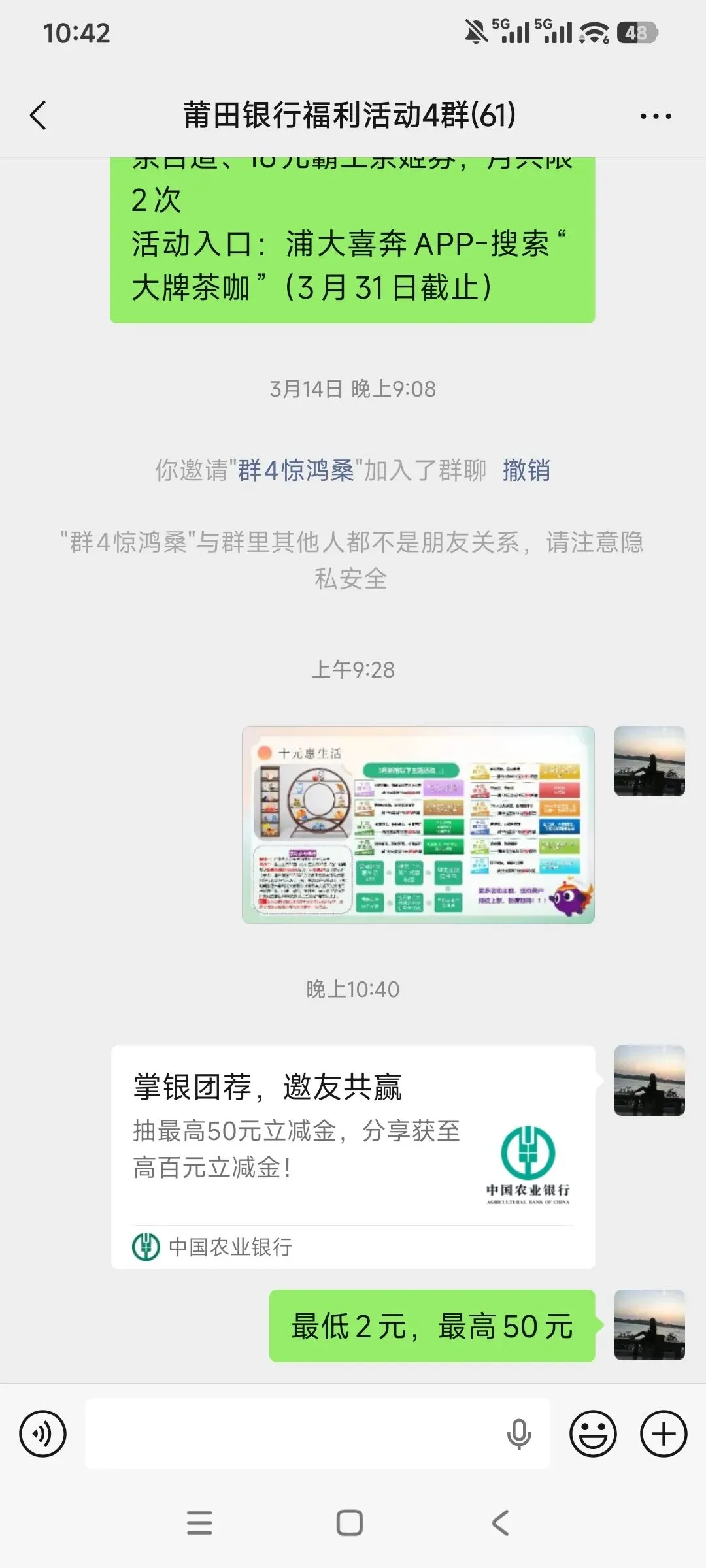 3月的莆田,农行抽奖最低2元,最高50元
