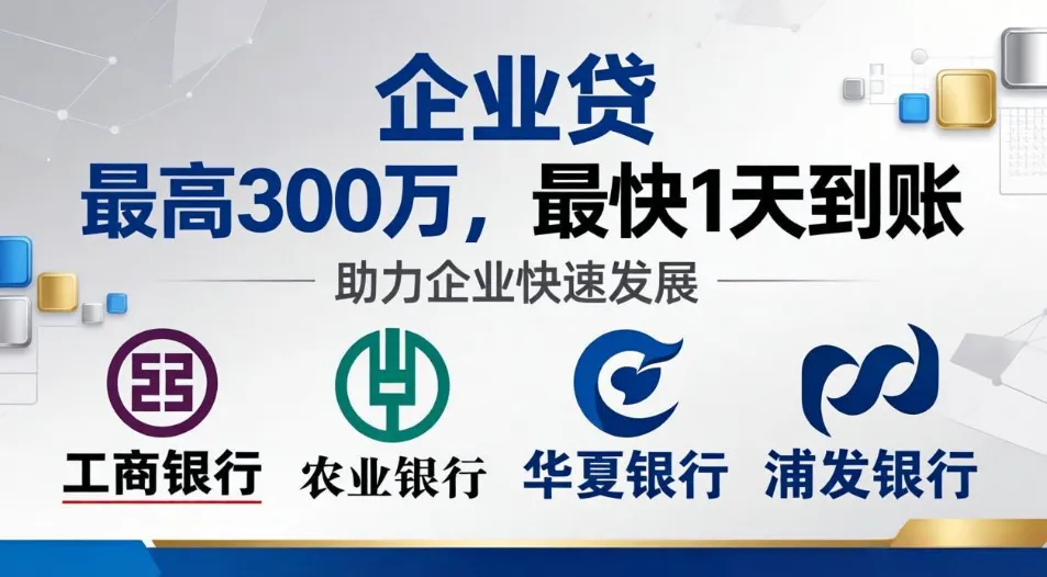 工商银行、农业银行、华夏银行、浦发银行 4 大银行企业贷|最高 300 万,最快 1 天到账,企业周转不用等