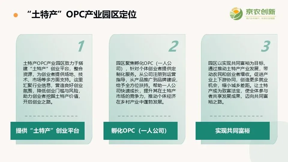 从“合作社+农户”到“农业龙头企业+OPC(一人公司)”模式升级:提供OPC创业平台、孵化OPC(一人一品公司)、实现共同富裕