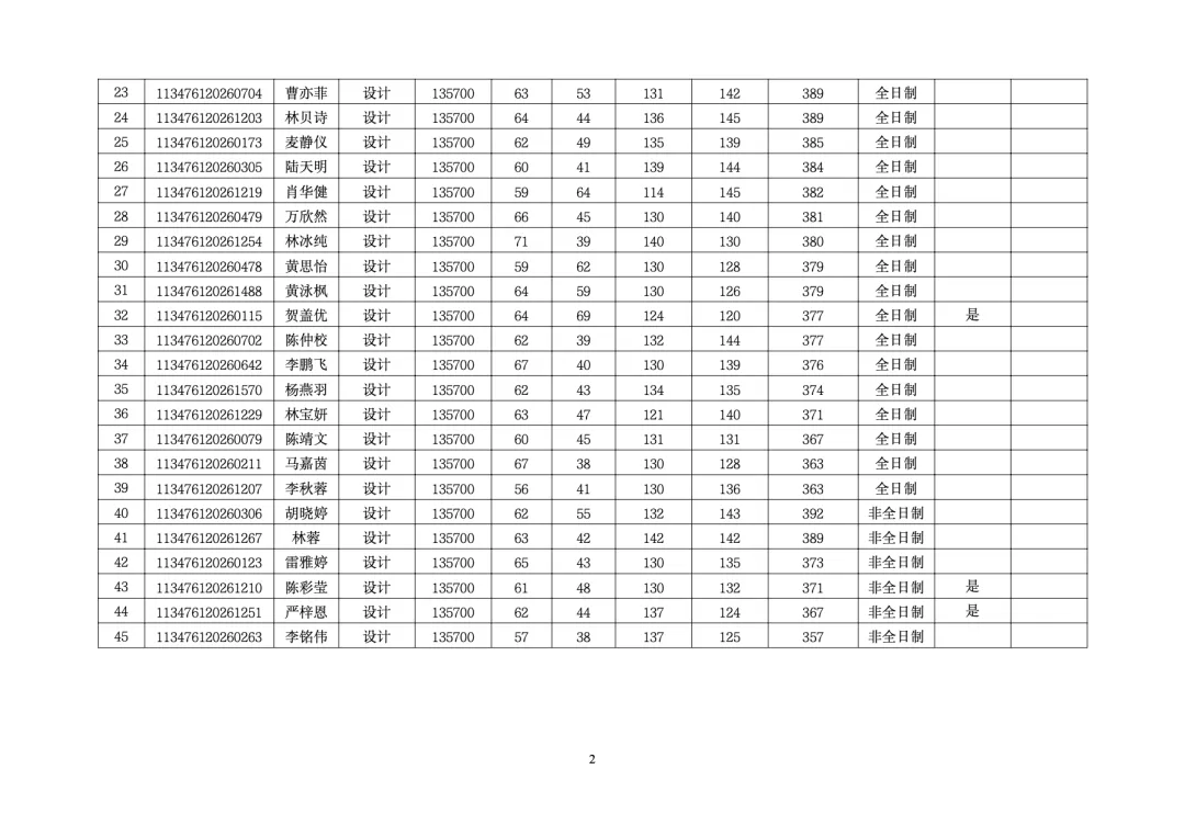 (3)招生专业按全日制与非全日制两类分开排序,考生综合成绩(保留至小数点后两位)从高到低排序确定拟录取顺序。