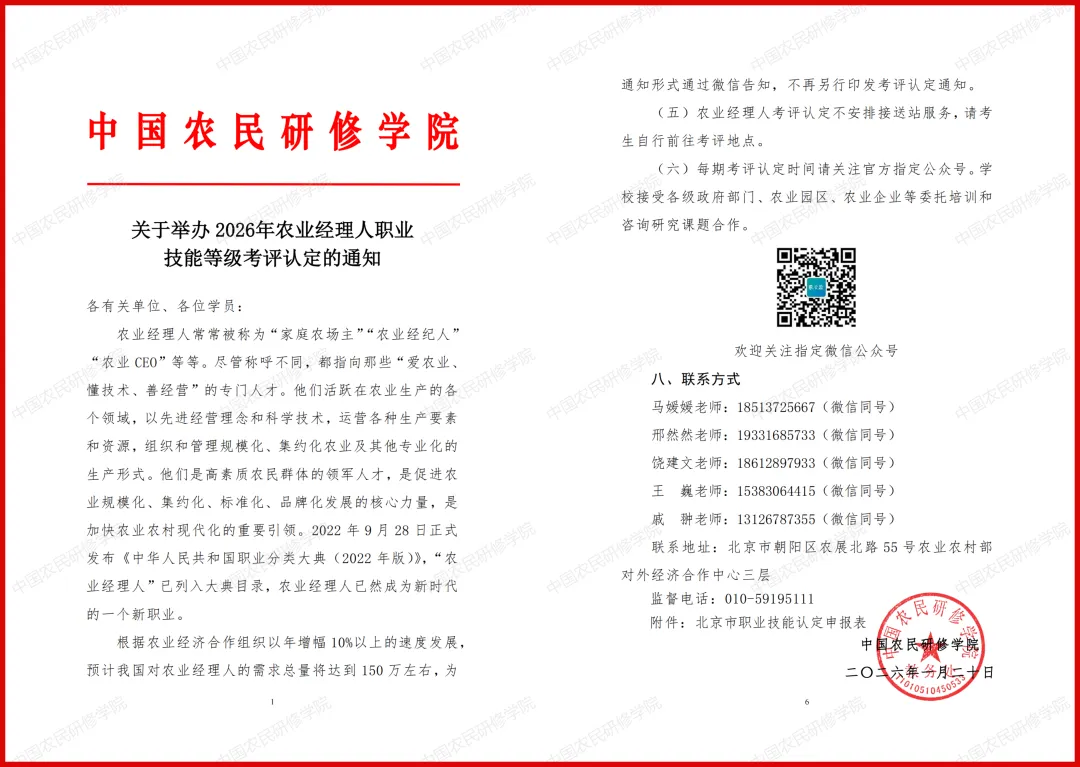 《中华人民共和国职业分类大典(2022年版)》收录了农业经理人这一农村新兴职业。农业经理人报名与考核,是需要进行报名资格的审核,所以不能个人报考,只能由指定的第三方机构进行考核与鉴定。