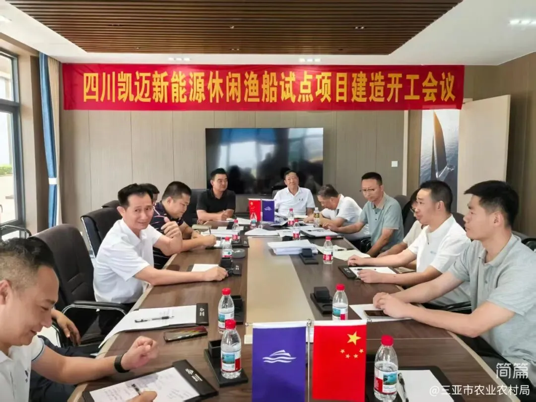检查结束后,现场组织船东(海南海道船休闲渔业科技有限公司)、动力系统集成商(四川凯迈新能源有限公司)、设计单位(武汉长海船舶科技发展有限公司)、船厂(海南凯威船舶修造科技有限公司)、第三方检验服务机构(海南昱方船舶技术服务有限公司)召开开工会议,并确认如下内容: