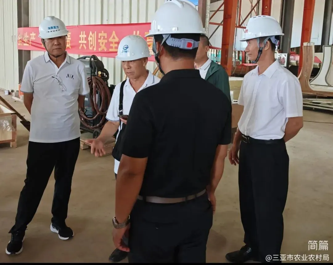 根据三亚市农业农村局关于新能源休闲渔船建造的工作部署,在海南省海洋和渔业监察总队的指导下,2025年6月5日上午, 我中心派出2名验船师由黄琼君主任带队联合第三方船舶检验技术服务机构(海南昱方船舶技术服务有限公司)赴临高海南凯威船舶修造科技有限公司开展纯电新能源休闲渔船琼三亚渔休88388(海南海道船休闲渔业科技有限公司)建造检验开工前检查工作。