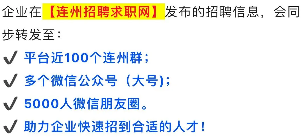 点击上方蓝字连州招聘求职网发布招聘信息
