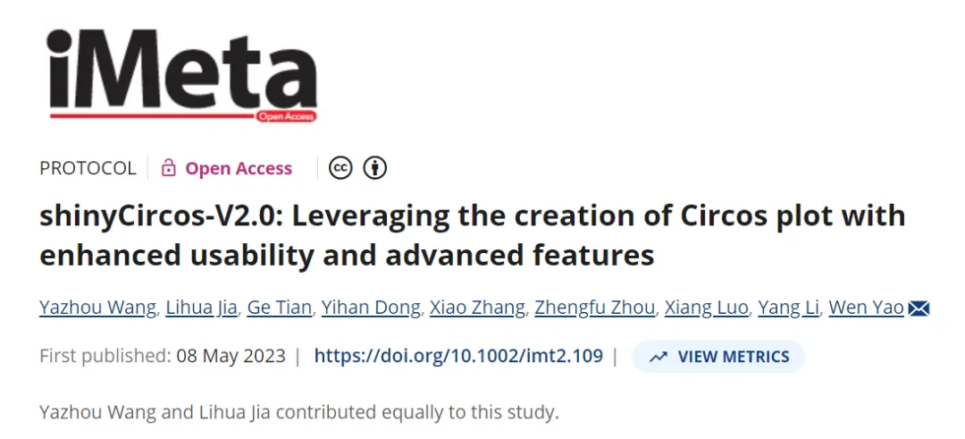 ● 2023年5月8日,河南农业大学姚文团队在 iMeta 在线发表了题为 “shinyCircos-V2.0: Leveraging the creation of Circos plot with enhanced usability and advanced features ” 的文章。