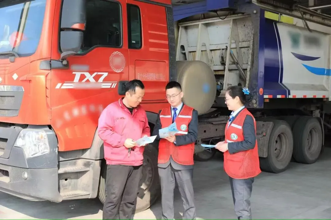 ▲农行山东潍坊坊子支行工作人员向货车司机讲解职业背债人的危害