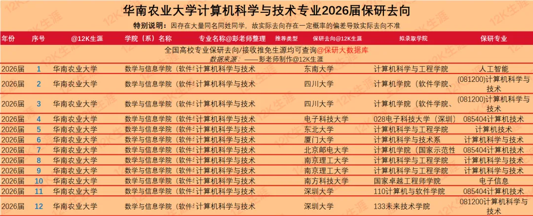 >华南农业大学2026届计算机科学与技术专业保研去向