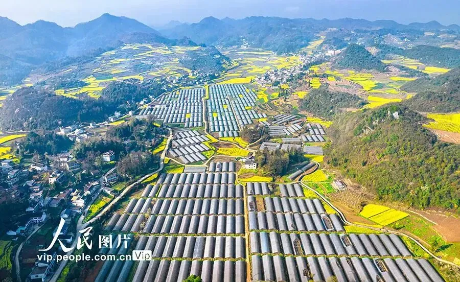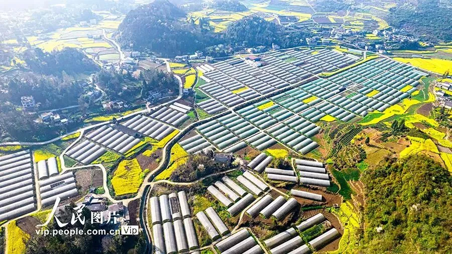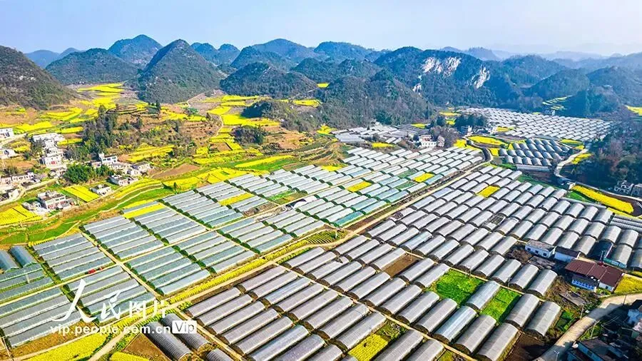 本文转自【人民网-图片频道】; 2026年3月11日,航拍贵州省黔西市雨朵镇特色产业圣女果种植基地。 早春时节,贵州省黔西市雨朵镇特色产业圣女果种植基地里连片大棚与民居、青山、油菜花交相辉映,构成一幅乡村美、产业兴、活力强的乡村振兴新画卷。史开心摄(人民图片网)