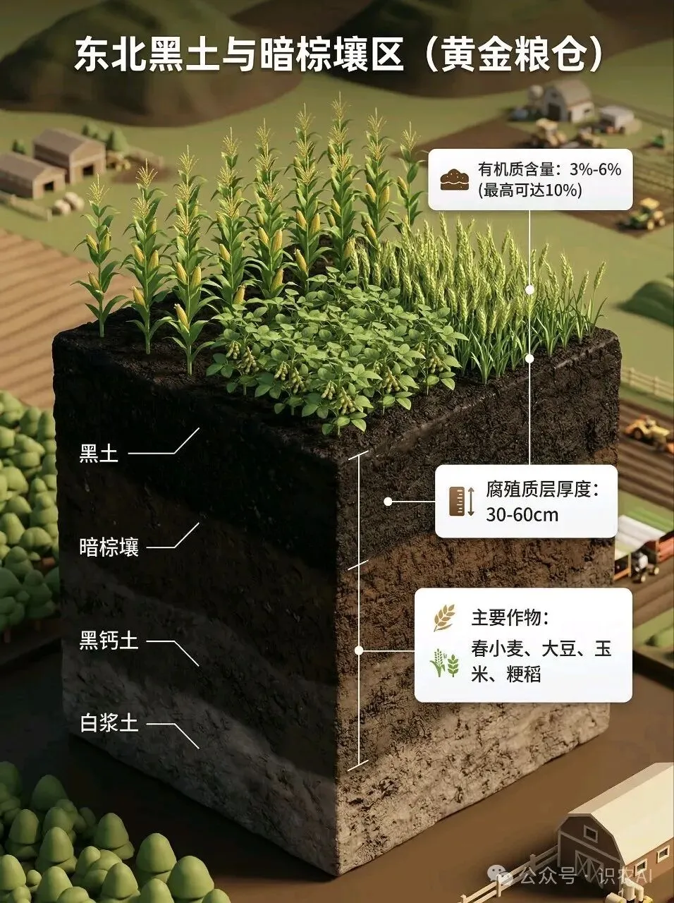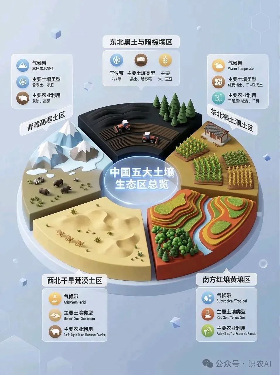 中国土壤生态格局可划分为五大核心区域,各具鲜明特征与农业价值: