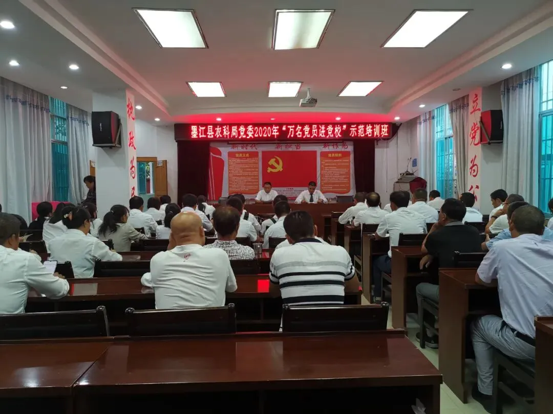 近日,墨江县农科局党委举办了为期3天的“万名党员进党校”培训班,农科局党委直属各党支部全体党组织书记、副书记、党务干部、普通党员共计115人参加培训。县委县直机关工委对本期培训班给予了高度重视和关心,培训班由党委书记全程把关,共学习7个专题,培训还邀请到县委党校讲师和县委县直机关工委相关领导授课。