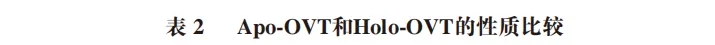 两种不同形式的OVT(不含铁的和与铁结合的)结构及理化性质有所不同,直接影响其在食品体系中加工、贮藏和食用过程中的性能,因此,对OVT结构和理化性质的研究不仅有助于OVT的广泛应用,而且有助于更好地理解蛋清在食品系统中的功能。