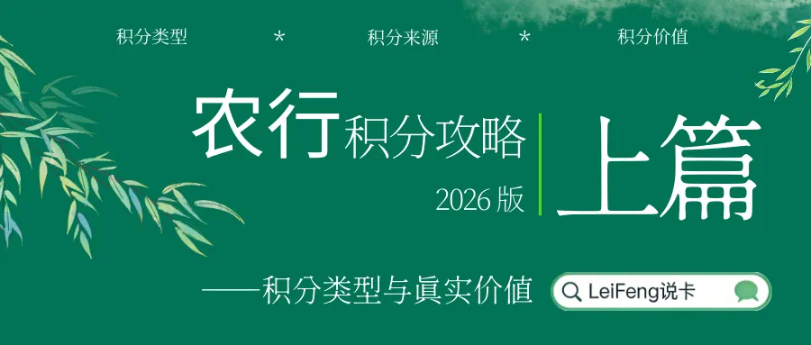 作为新手友好型博主,LeiFeng把农行积分拆成上、中、下三篇,从基础到进阶、从规则到实测,一次性讲透,看完你也能成为别人眼里的农行玩卡老玩家。